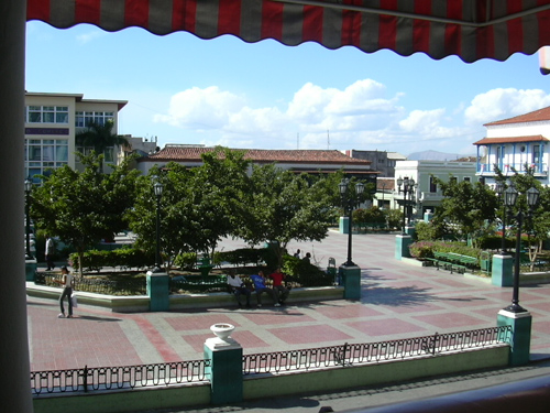 At a square in downtown Santiago called the Balcon de Velazquez, the site of an ancient fort, looking west.